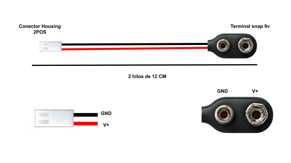 Este se encuentra dentro de un condulet 3" junto con el transductor del equipo GAS-PAR® G4S, consta de 2 hilos con un conector housing 2pos en un extremo y conectores snap 9V en el otro extremo.