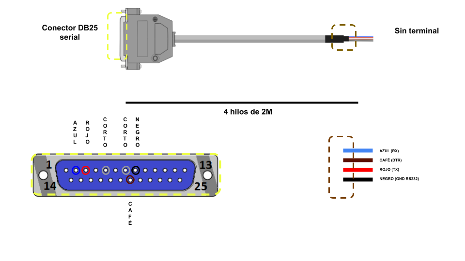 Este se utiliza en los equipos CB GAS-PAR® G4S se compone de un conector DB25 serial que lleva 4 hilos para datos .