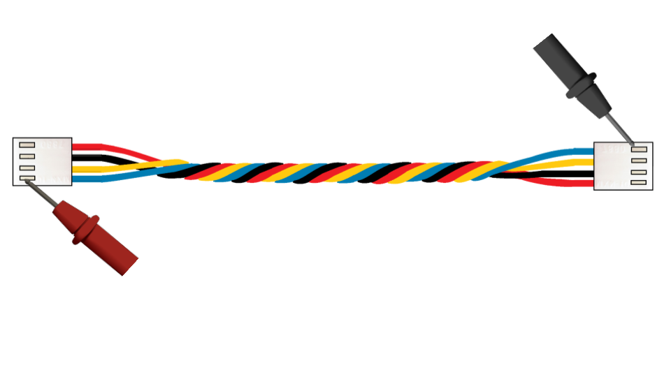 A) Medición de continuidad extremo a extremo con el uso de un multímetro en modalidad de continuidad.