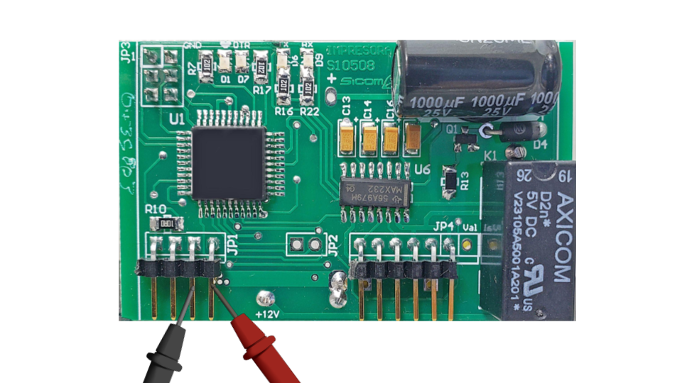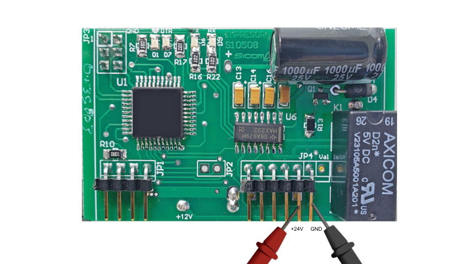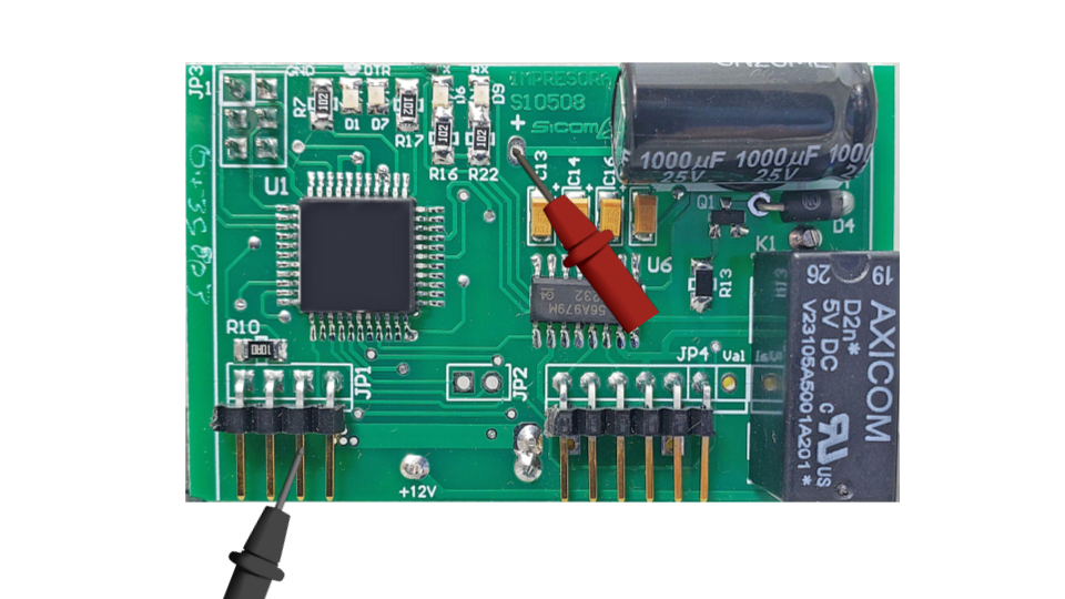C) Se deberá medir el voltaje amplificado del módulo pasando por el relé, esto se hace cuando el módulo detecta actividad a través del bus 1, en automático se activa el relé, como confirmación el bottom el led D5 RLY al estar encendido confirma el estado para hacer la medición