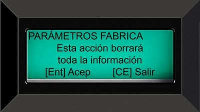 Para acceder al menú siga la ruta de: Operador -> acceso programador -> panel de control -> módulo transductor -> configuración -> Parámetros de fábrica