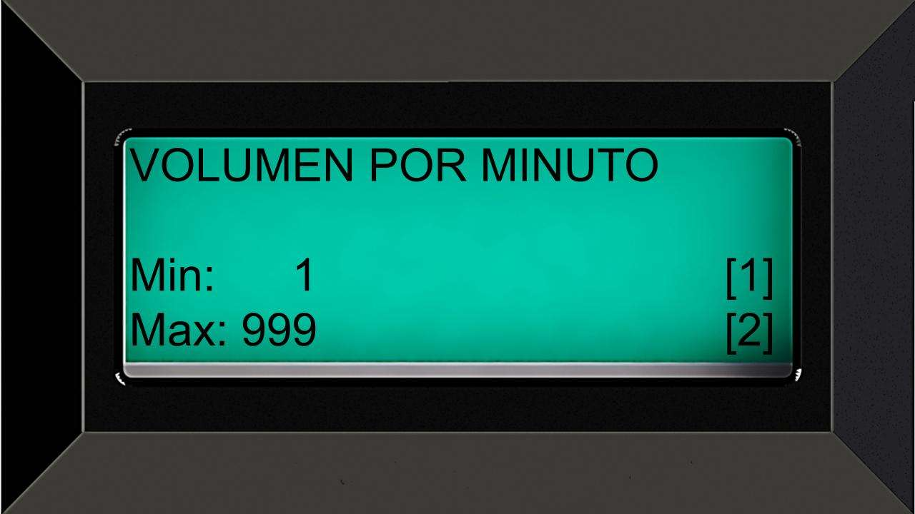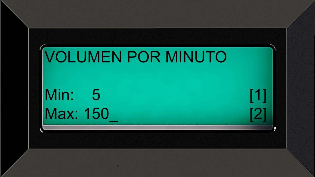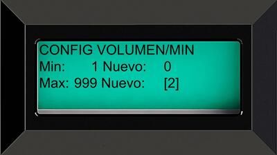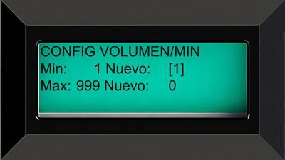 Para llegar a este menú siga la ruta de: Acceso Programador -> Panel de Control -> Modulo Transductor -> Configuraciones -> Volumen por minuto.