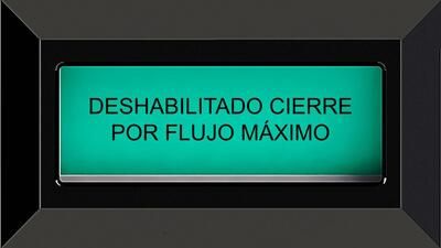 - Aparecerá el mensaje: "DESHABILITADO CIERRE POR FLUJO MÁXIMO".