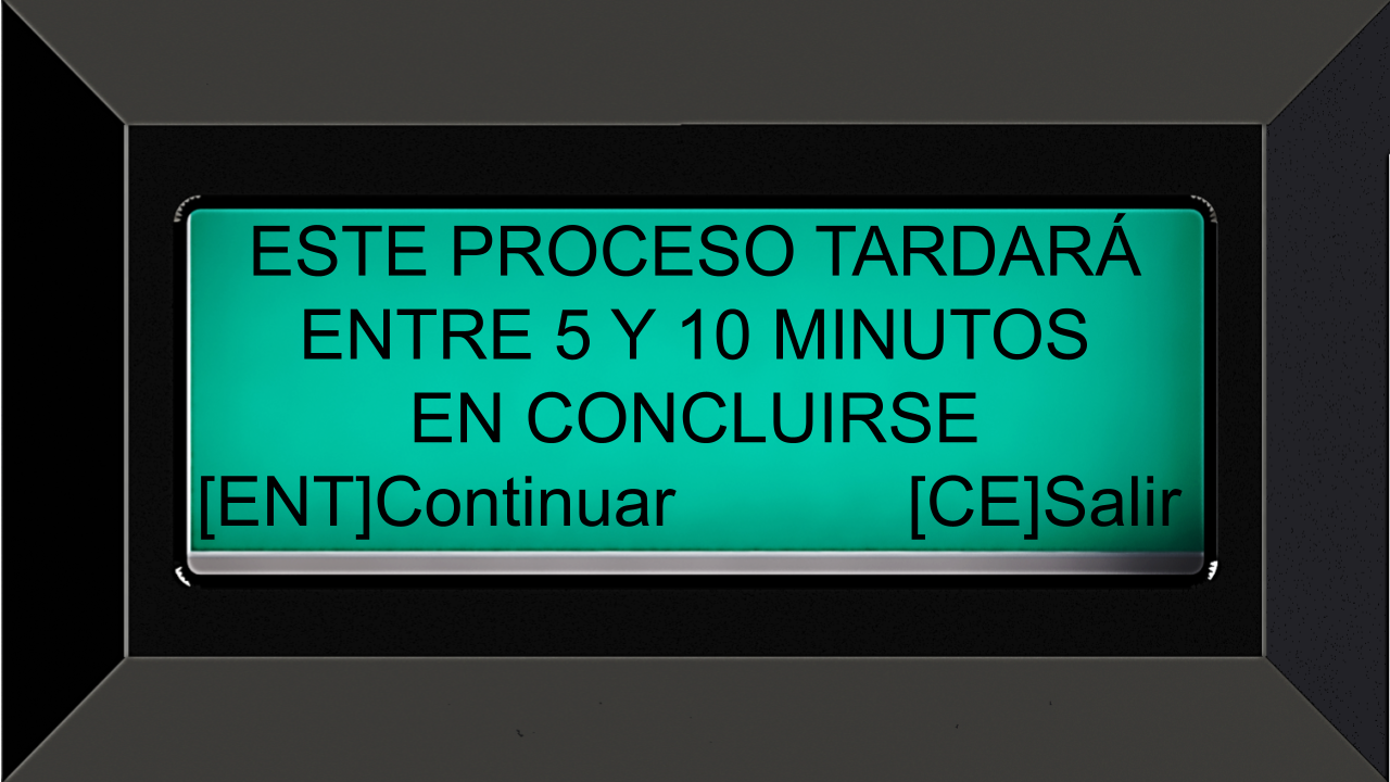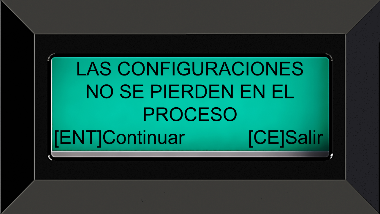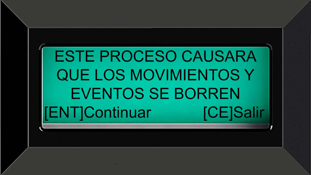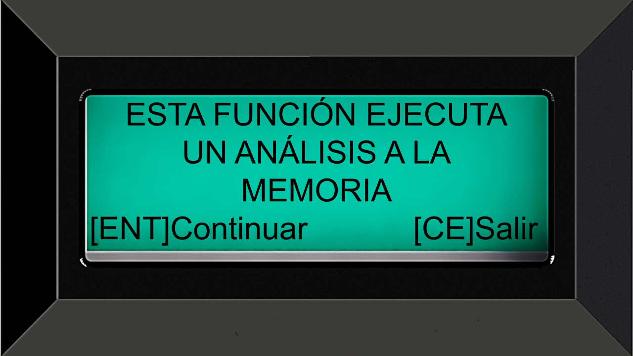 Para ejecutar el proceso de limpieza de memoria presione [ENT] y confirme cada mensaje en pantalla hasta llegar a la confirmación final.