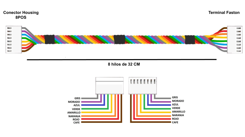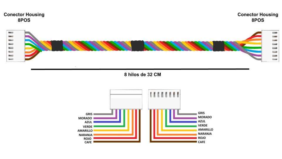 Este se encuentra dentro del panel del los equipos GAS-PAR® G4S, consta de 8 hilos con un conector housing 8pos en ambos extremos, este se conecta entre el teclado y un módulo display volumen o venta.