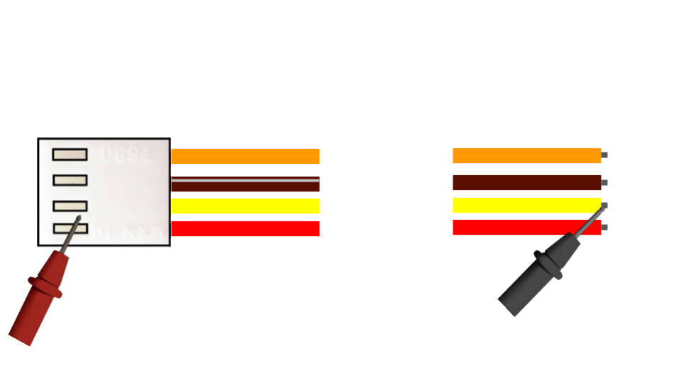 A) Medición de continuidad extremo a extremo con el uso de un multímetro en modalidad de continuidad.