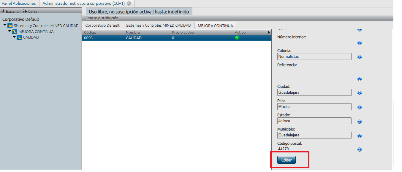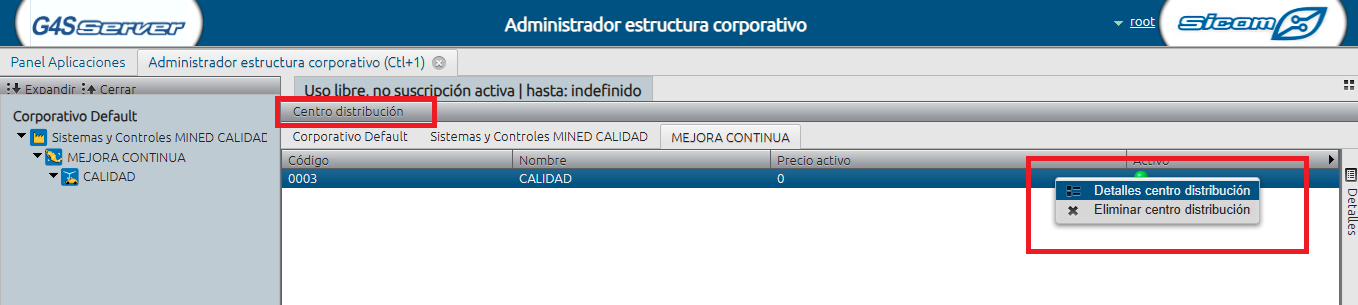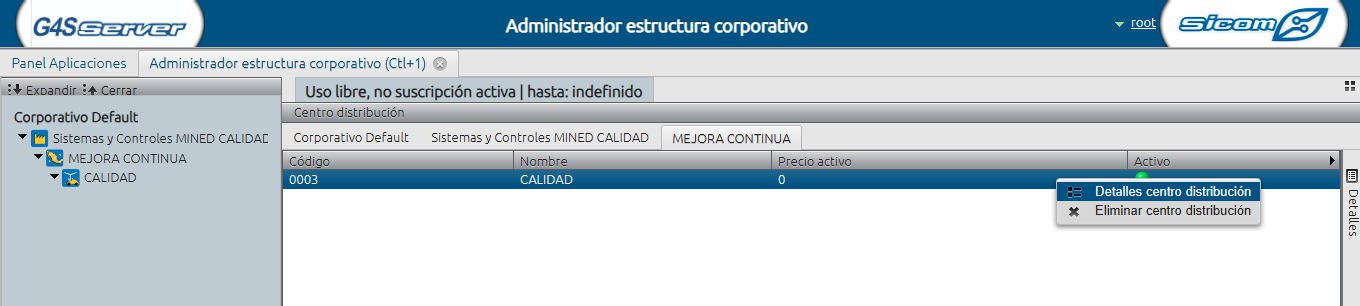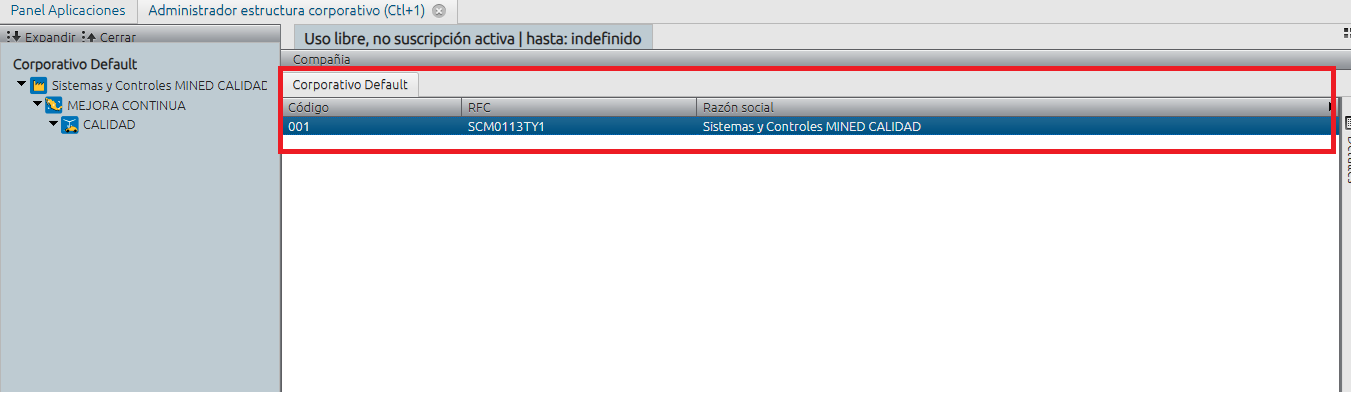 Desde el panel de aplicaciones acceda al administrador de estructura corporativo