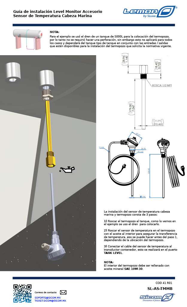 Termopozo y Sensor Temperatura Cabeza Marina