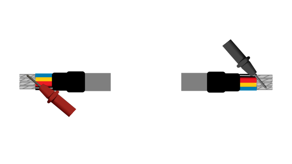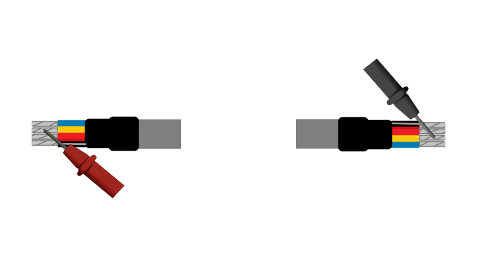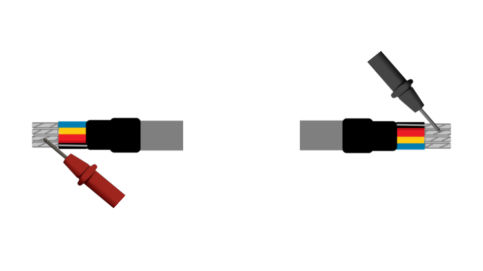 2) Medición de continuidad de punta a punta, usando un multímetro en modalidad de continuidad vamos a colocar las puntas en ambos extremos del cable para validar que los hilos tengan continuidad y una resistencia congruente.