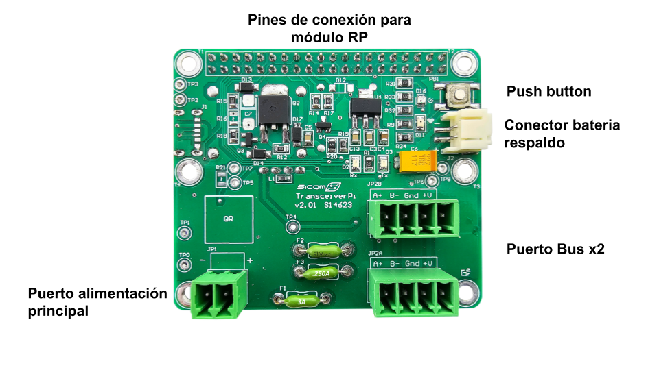 J) Salida de puerto de Bus, se contempla el mismo voltaje de TP1.