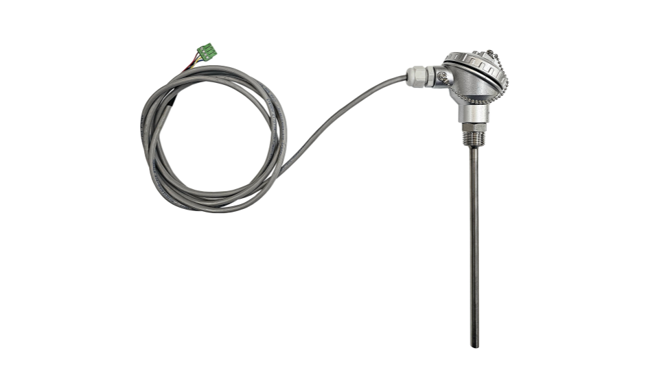 El sensor de temperatura RTD cabeza marina se conecta al módulo transductor contenedor, este sensor está en contacto directo con el producto a sensar (medición estática) a través de un termopozo y envía la señal eléctrica al módulo transductor contenedor.
