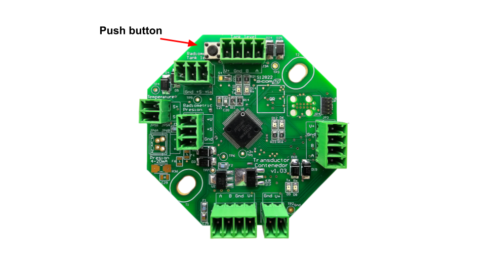 Validando que el cable está integró validamos que el módulo transductor contenedor esté funcional, usaremos una función con el push button que se señala en la imagen.