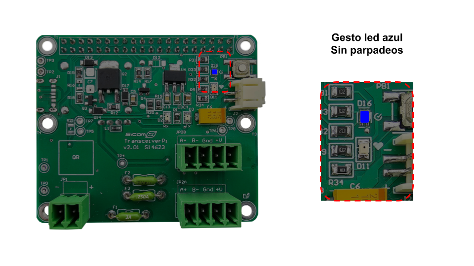 Led RGB D16 del módulo concentrador muestra a través de sus distintos colores gentos de su estatus actual.