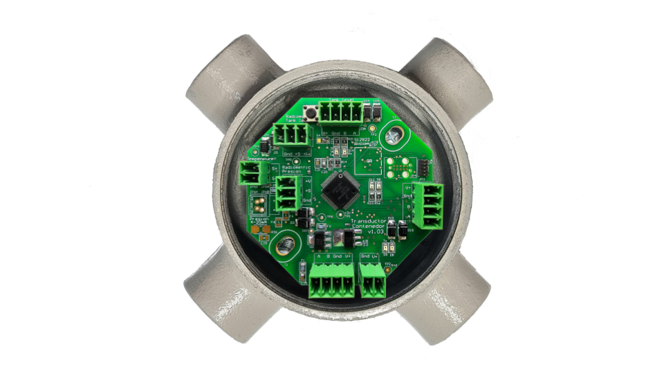 Este módulo tiene la capacidad de almacenar una gran cantidad de registros que envían los transductores contenedor con las mediciones de nivel, temperatura y presión de los almacenes, esta información se envía en tiempo real a la plataforma Lemon aunque en caso de sufrir periodos sin comunicación se tiene la capacidad interna de almacenar hasta 30 días.
